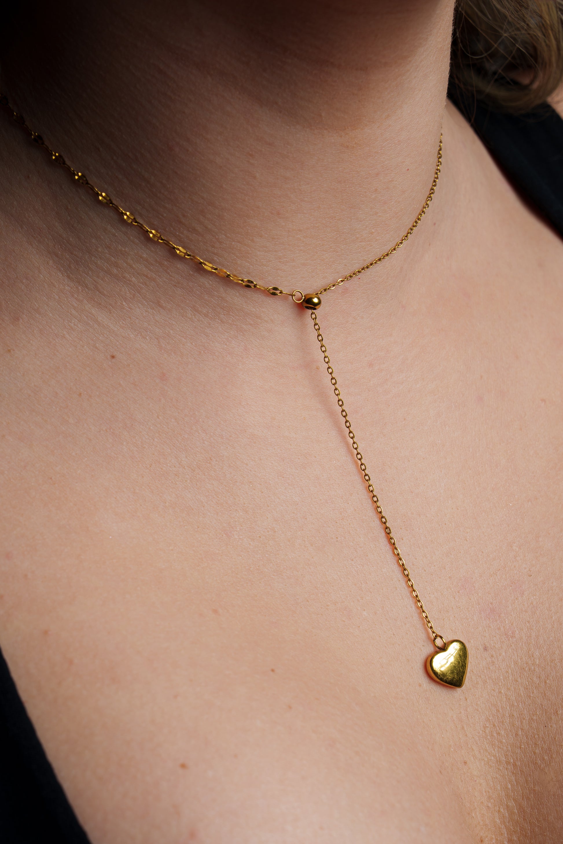 Colier placat cu aur de 18K, cu un pandantiv delicat în formă de inimă și lanț ajustabil.