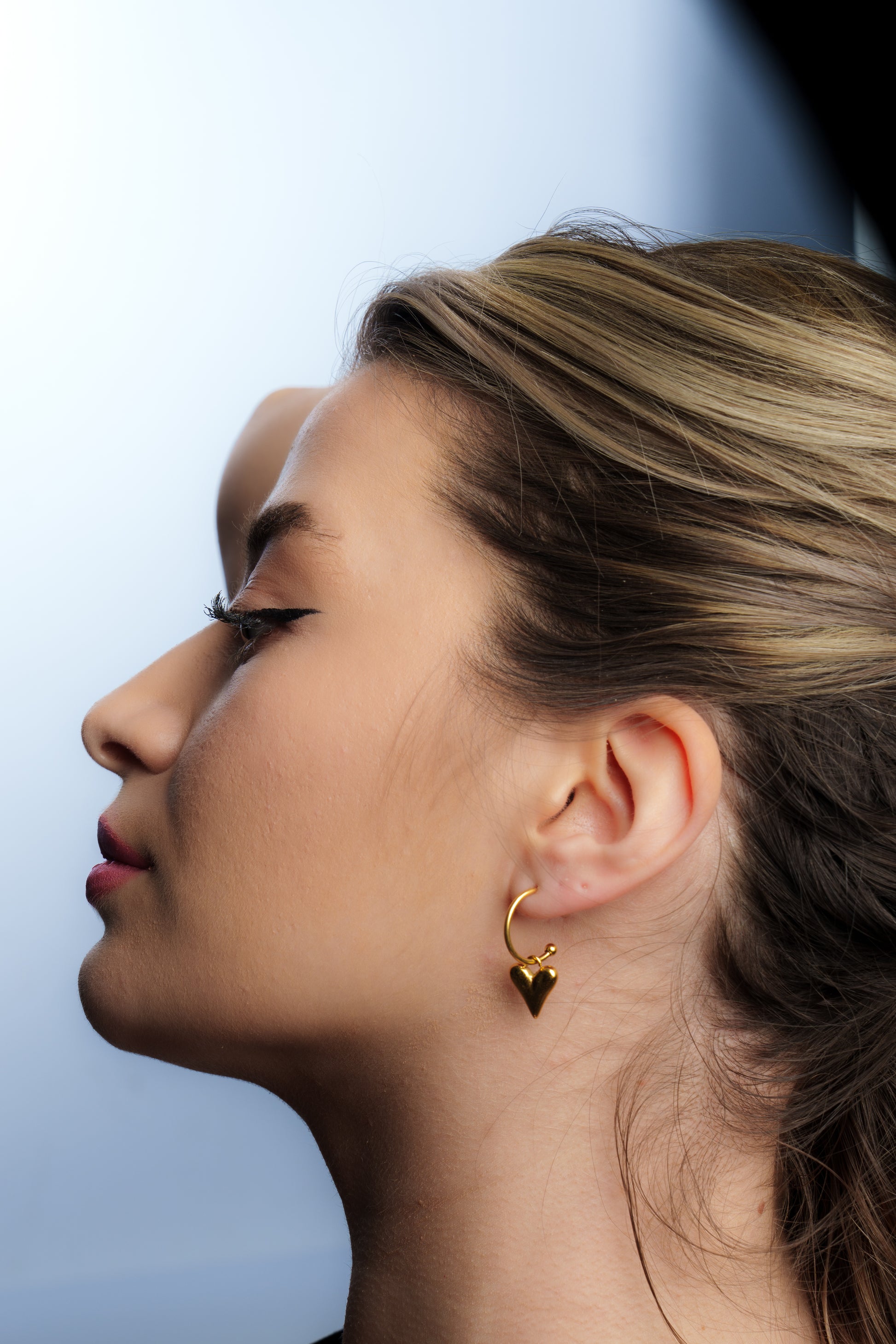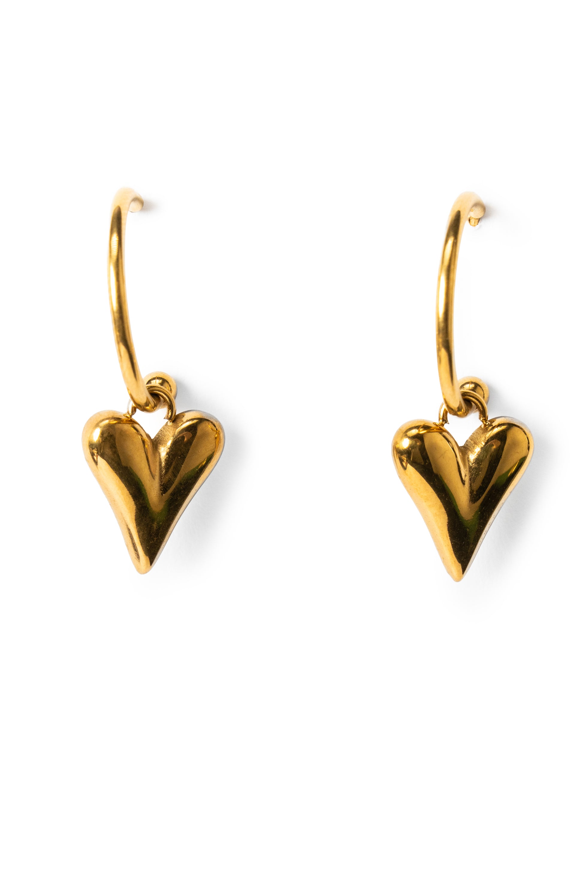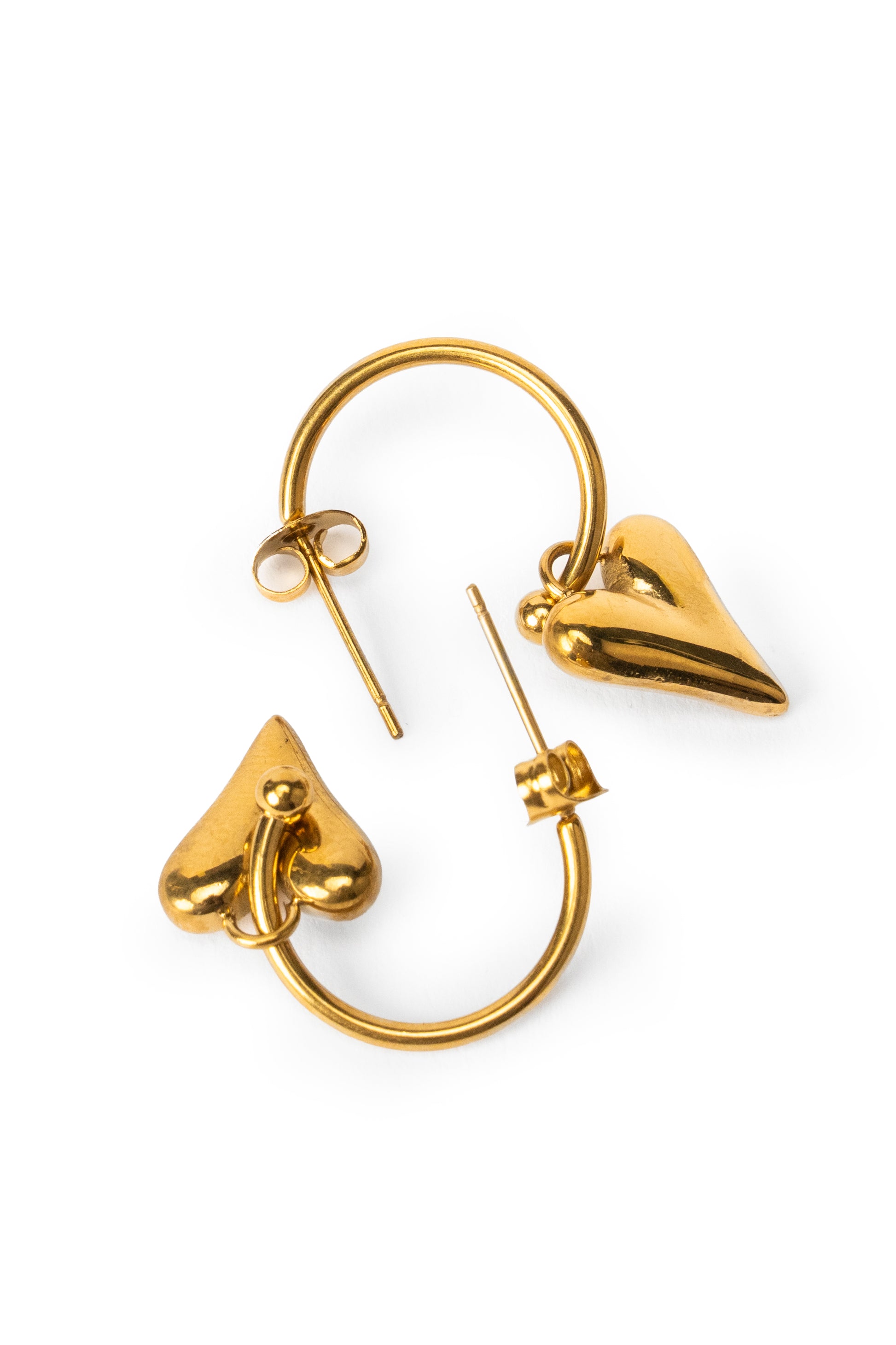 Cercei placati cu aur de 18K, cu inimioare voluminoase și un design elegant.