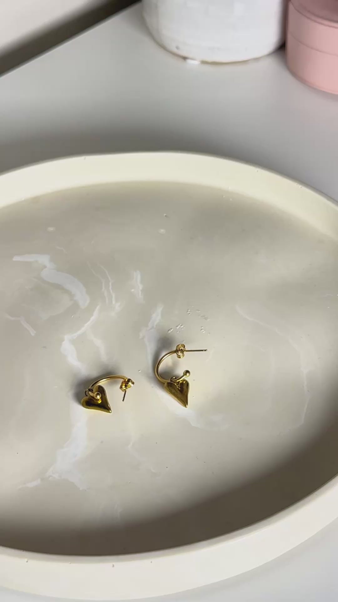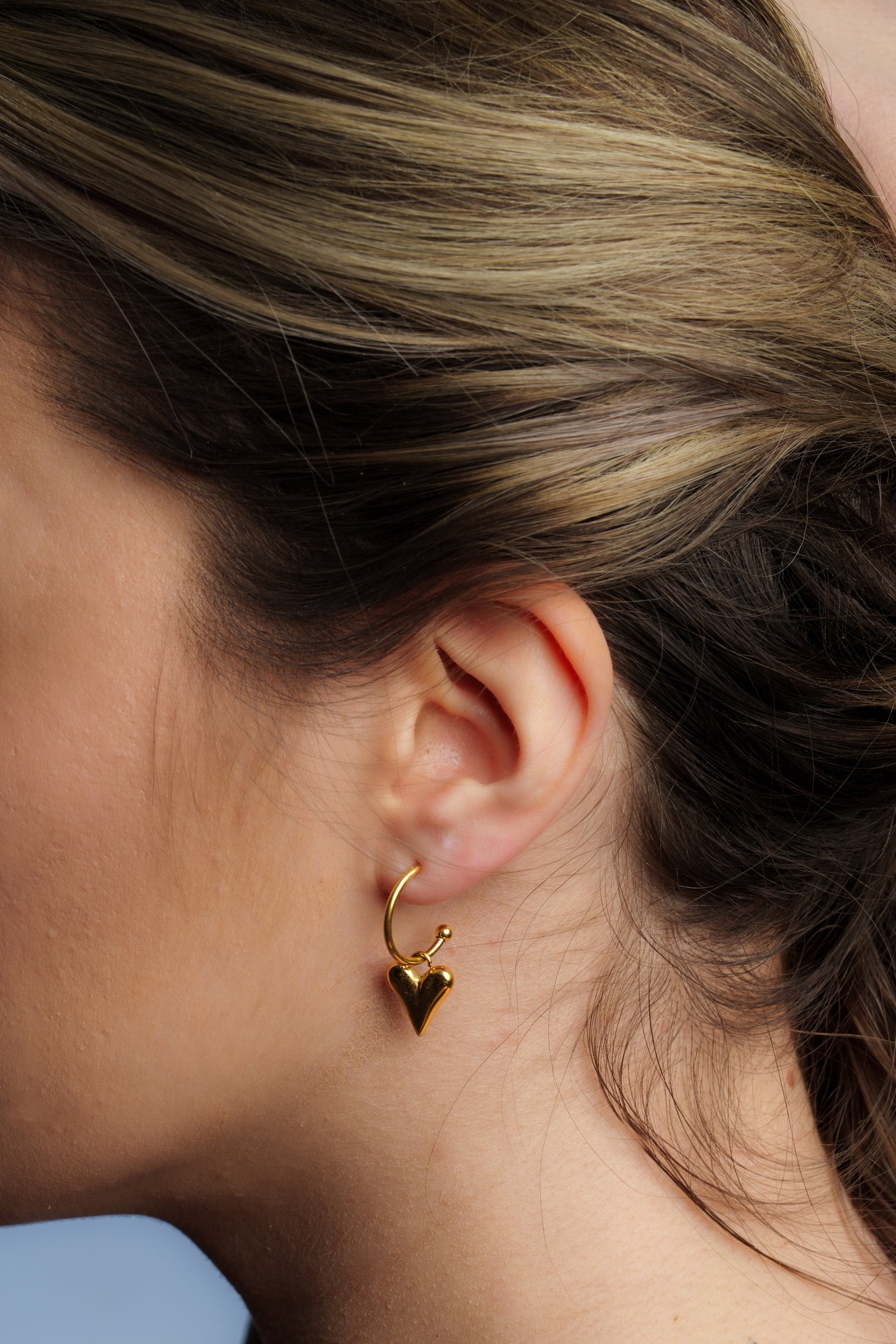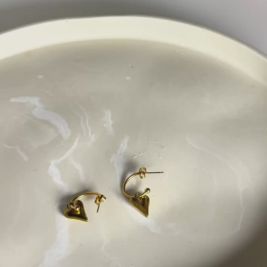 Cercei placati cu aur de 18K, cu inimioare voluminoase și un design elegant.