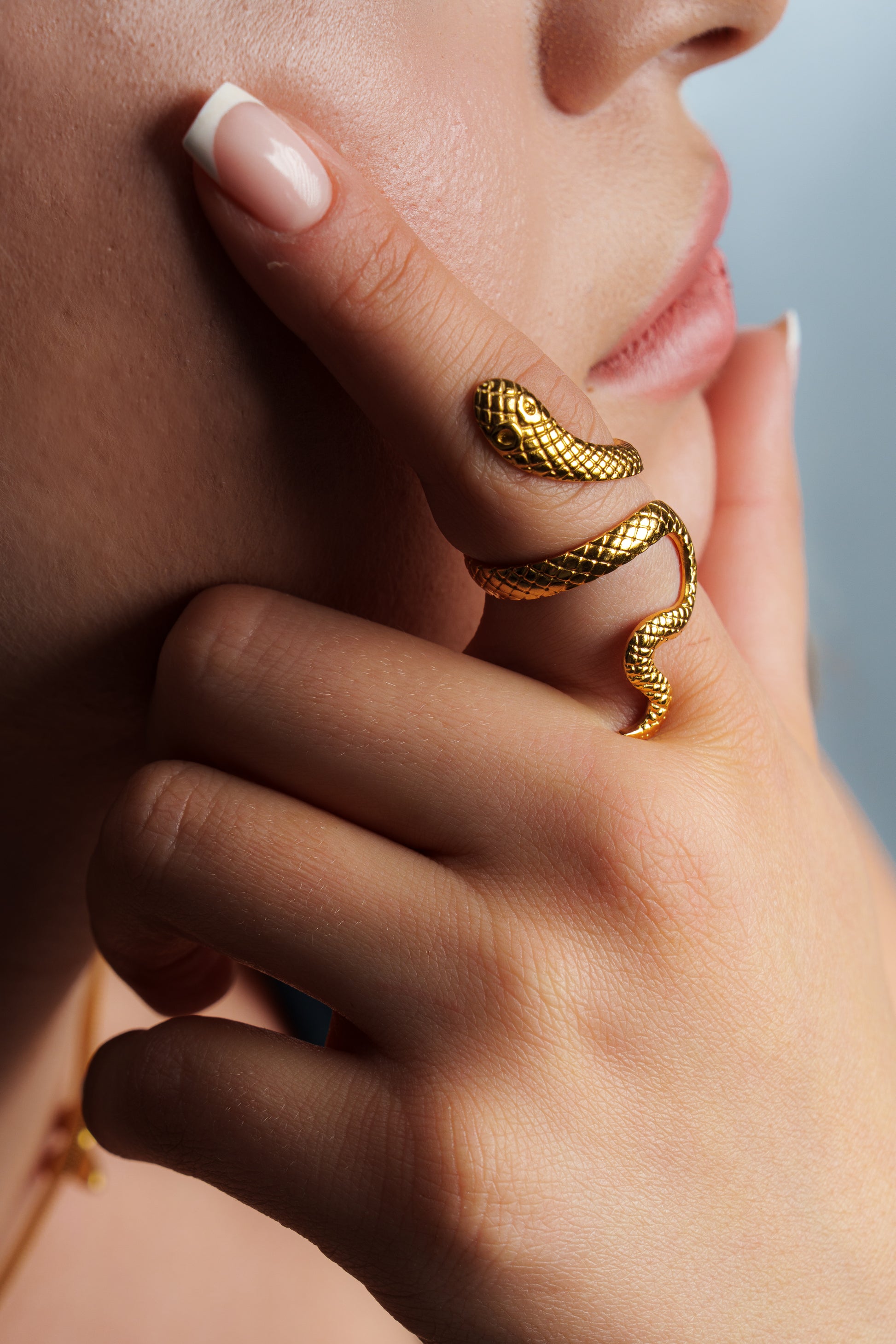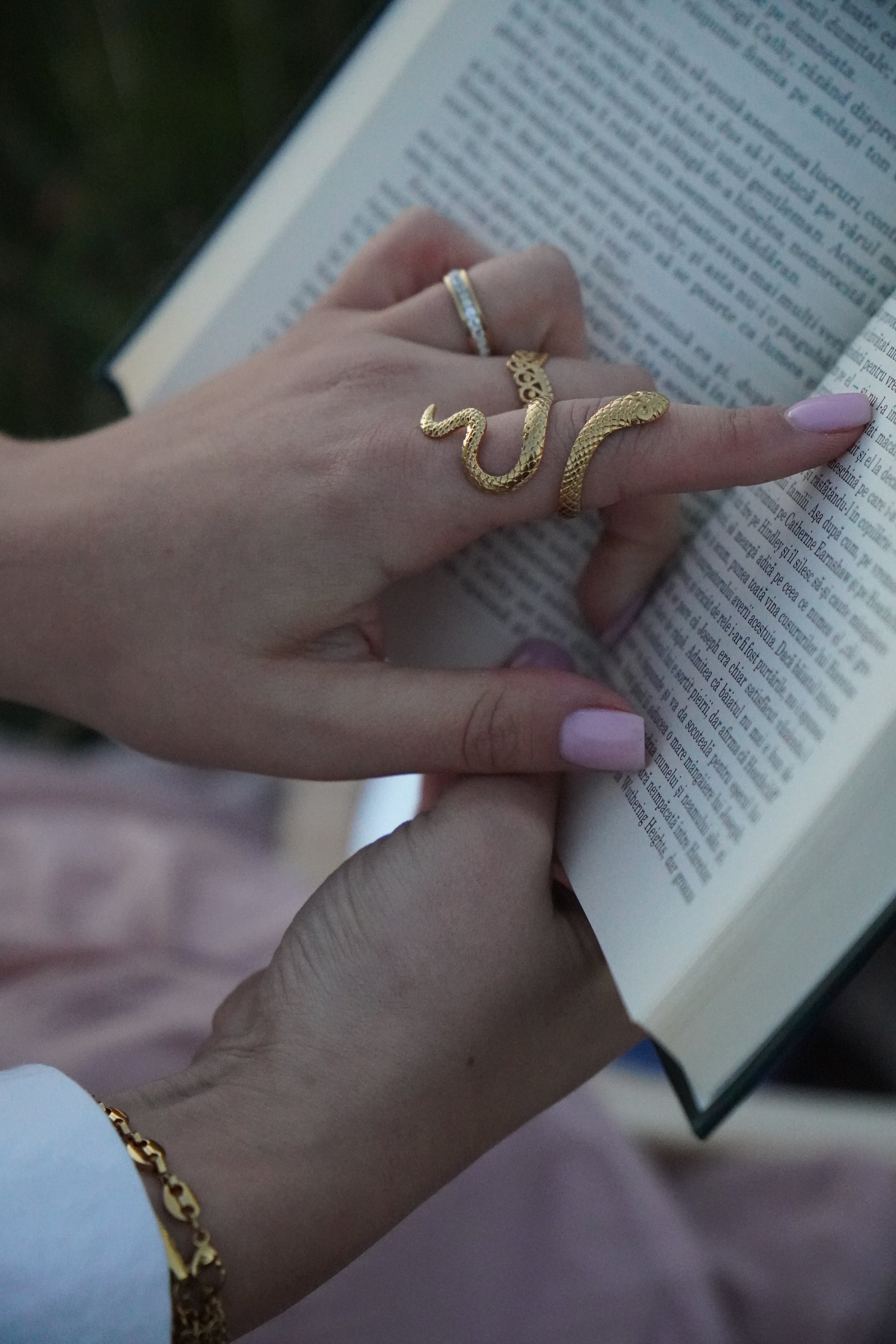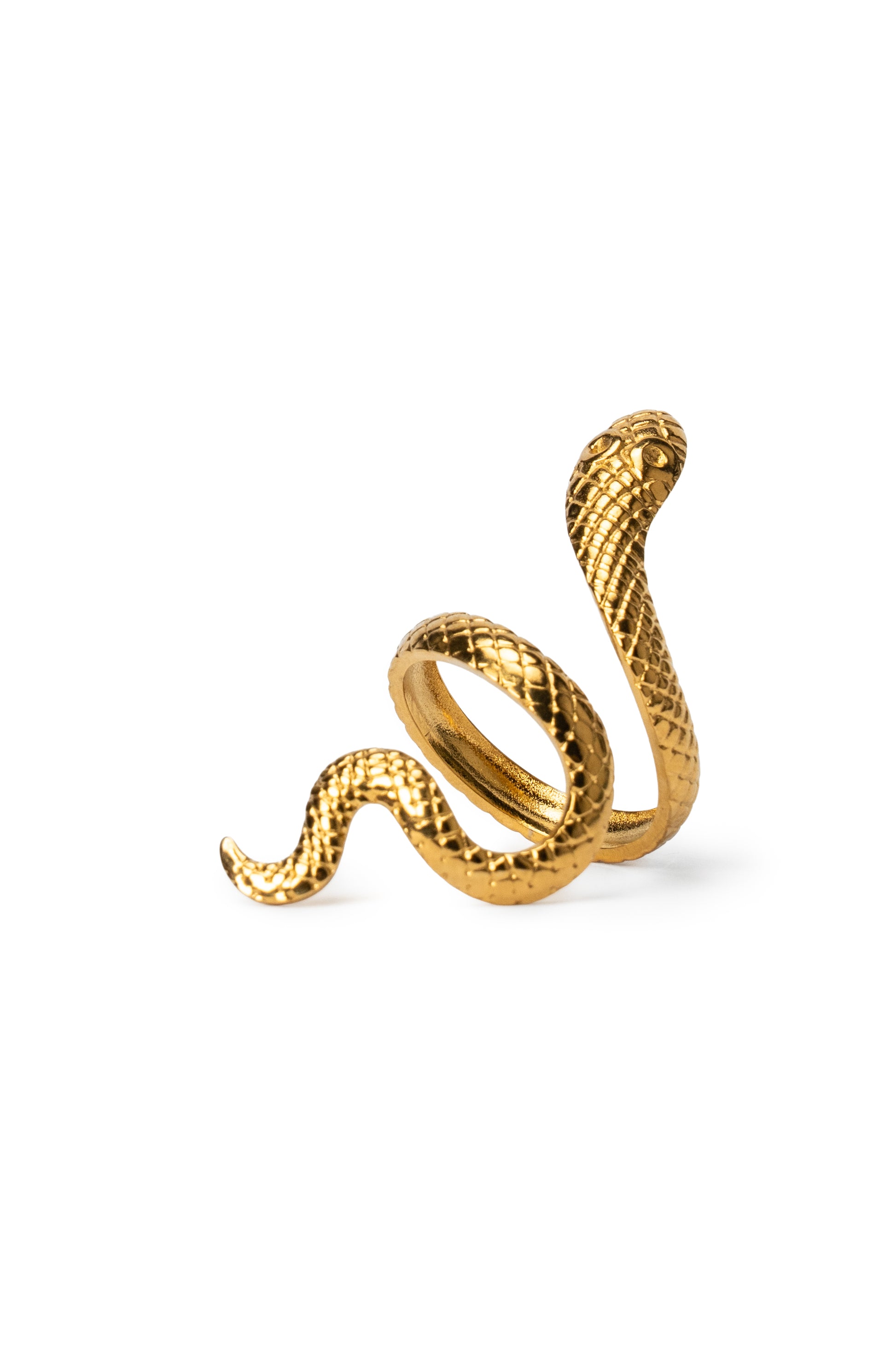 Inel sculptat în formă de șarpe, placat cu aur de 18K, cu detalii texturate și un aspect îndrăzneț.