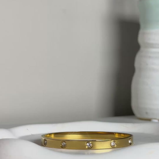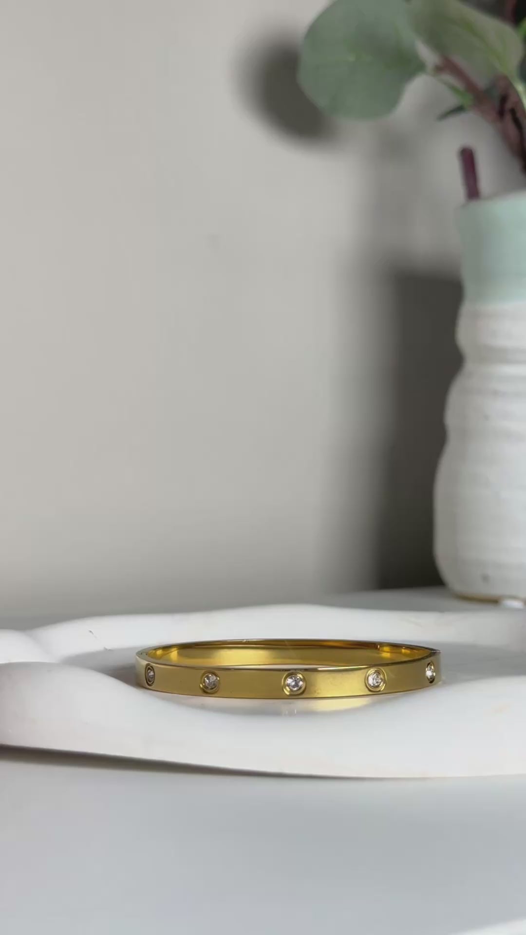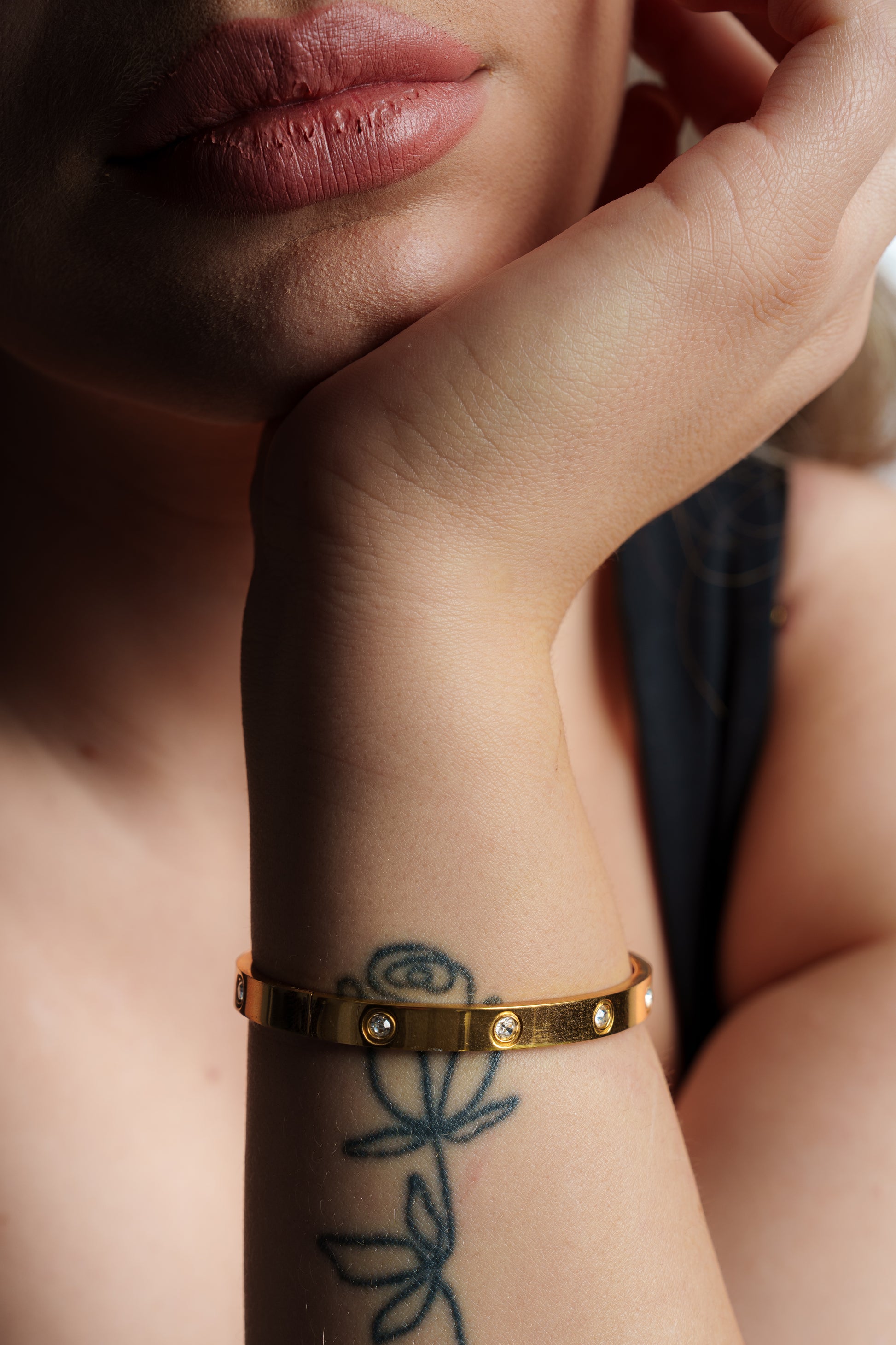 Brățară bangle placată cu aur de 18K cu detalii strălucitoare și sistem de închidere securizat.
