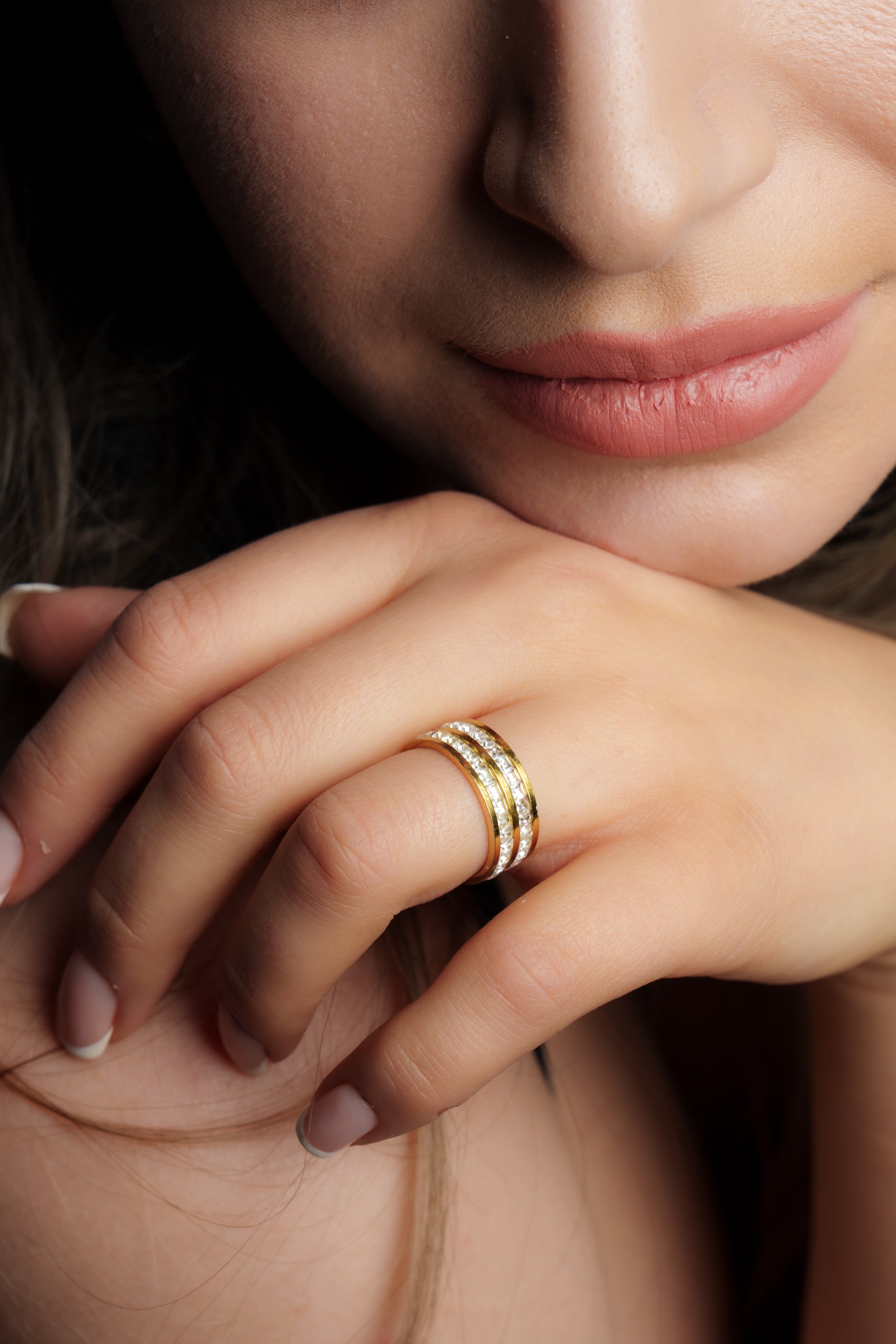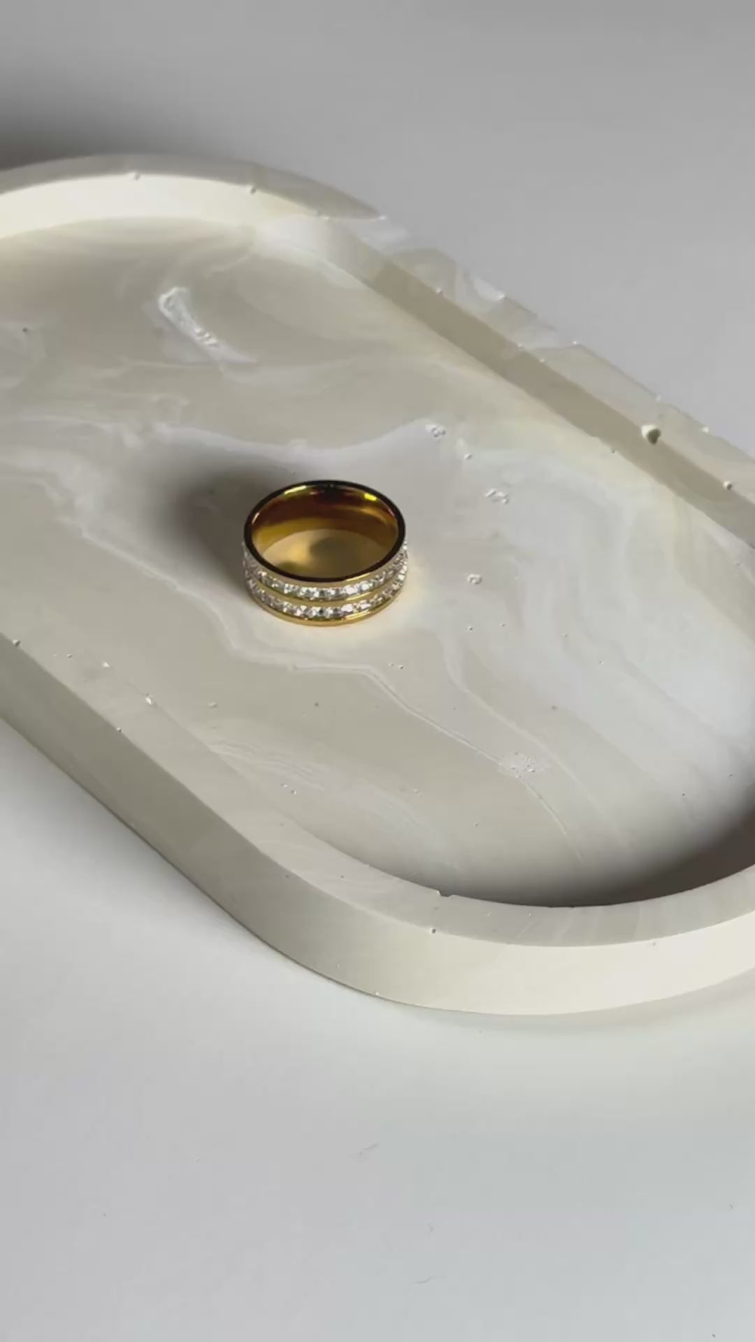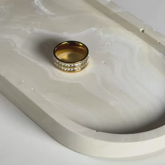 Design modern, placat cu aur de 18K, cu două rânduri de cristale albe strălucitoare.