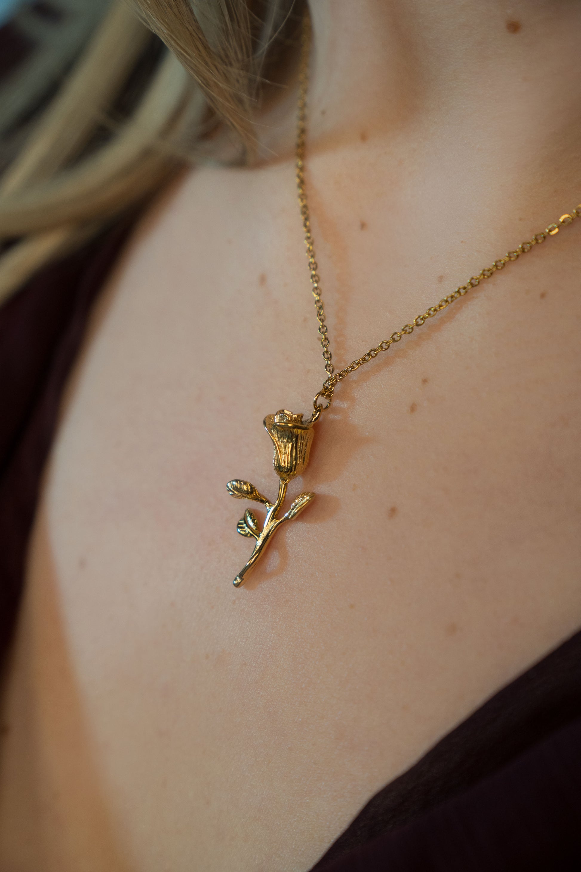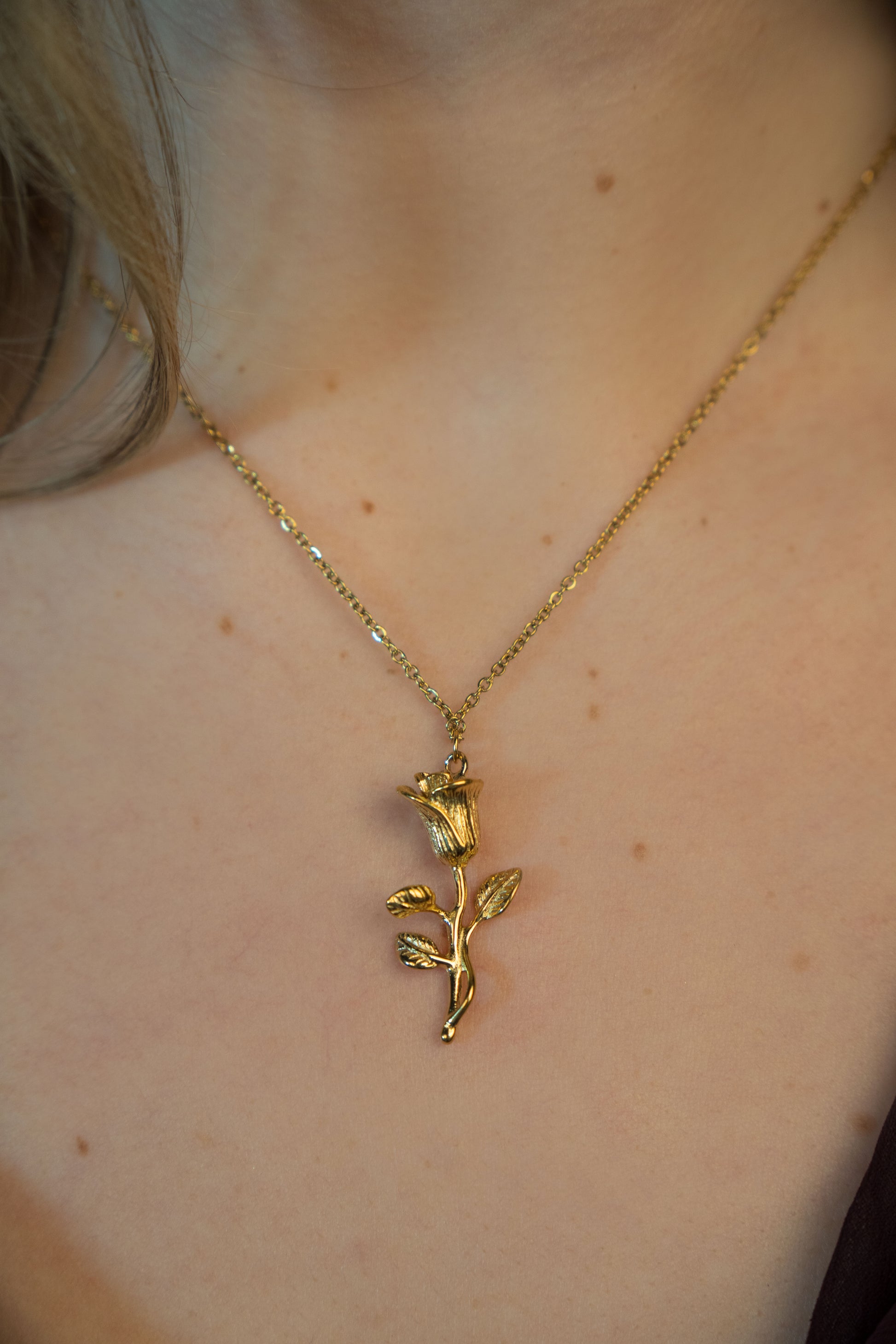 Trandafirul 3D, placat cu aur de 18K, are detalii fine care îi oferă volum și realism, transformând colierul într-o bijuterie statement. Lanțul gros adaugă contrastul perfect: un mix de fragilitate și forță, exact ca energia unei femei.