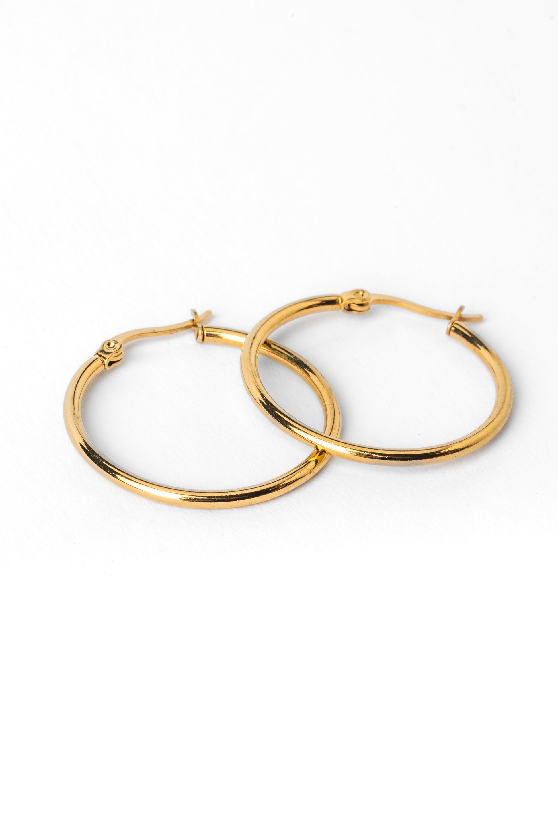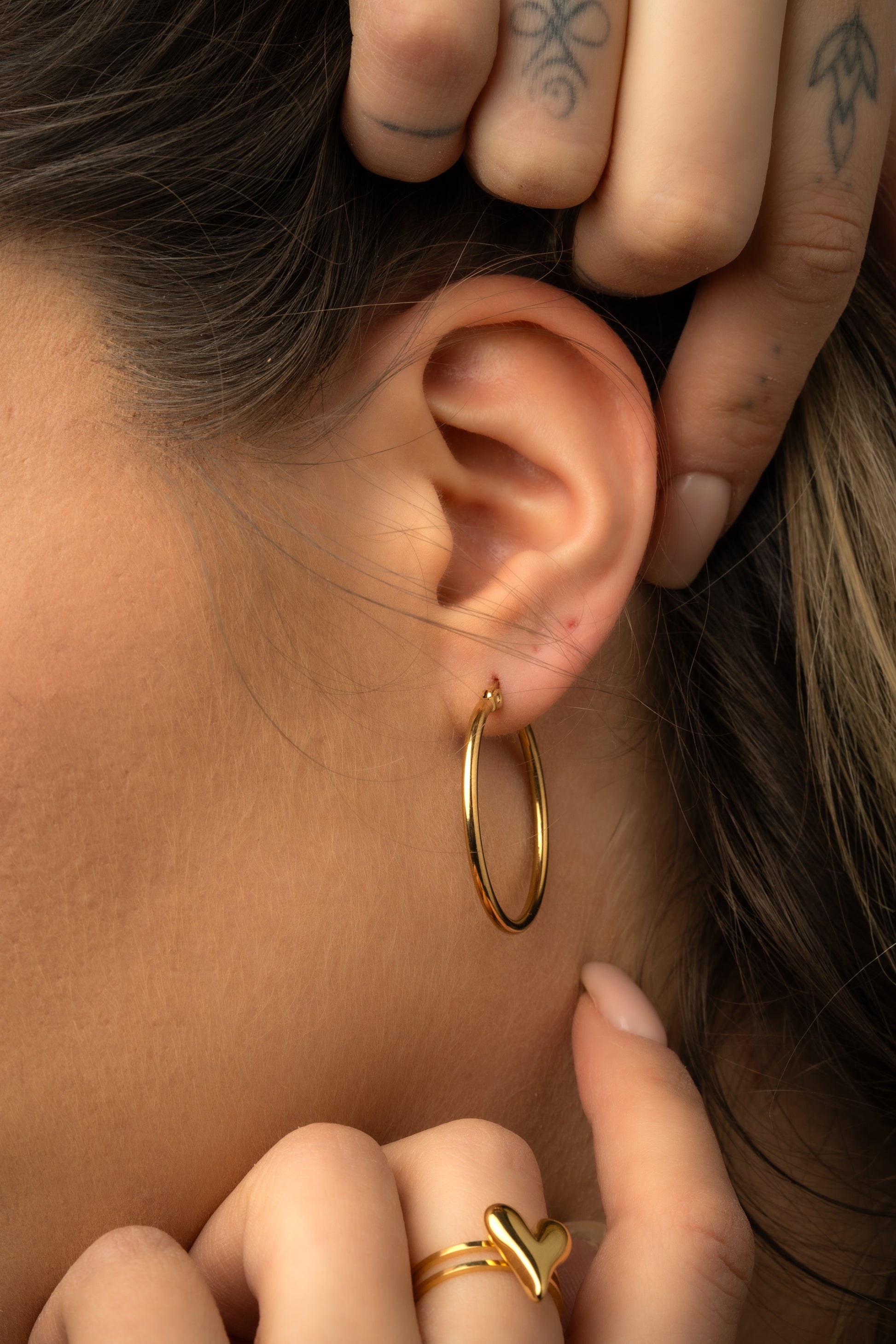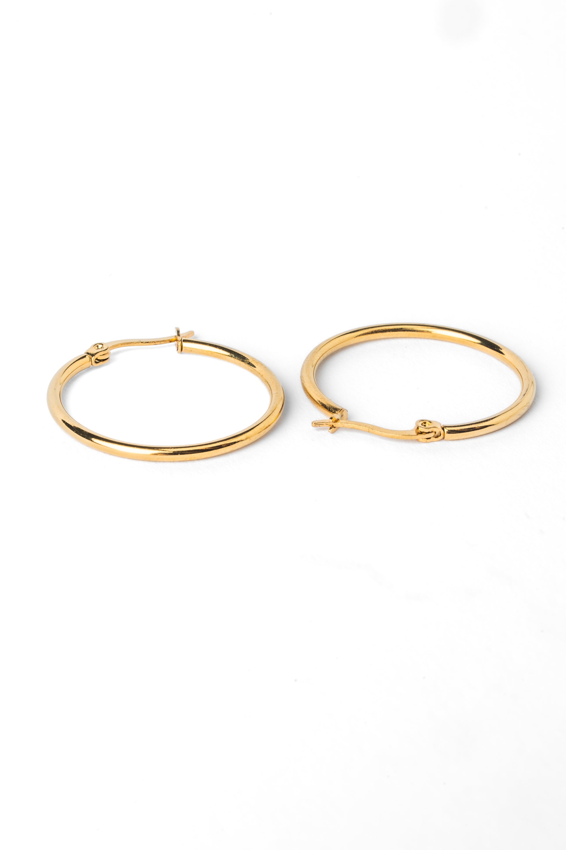 Cercei hoop placati cu aur de 18K cu design clasic și formă ovală.