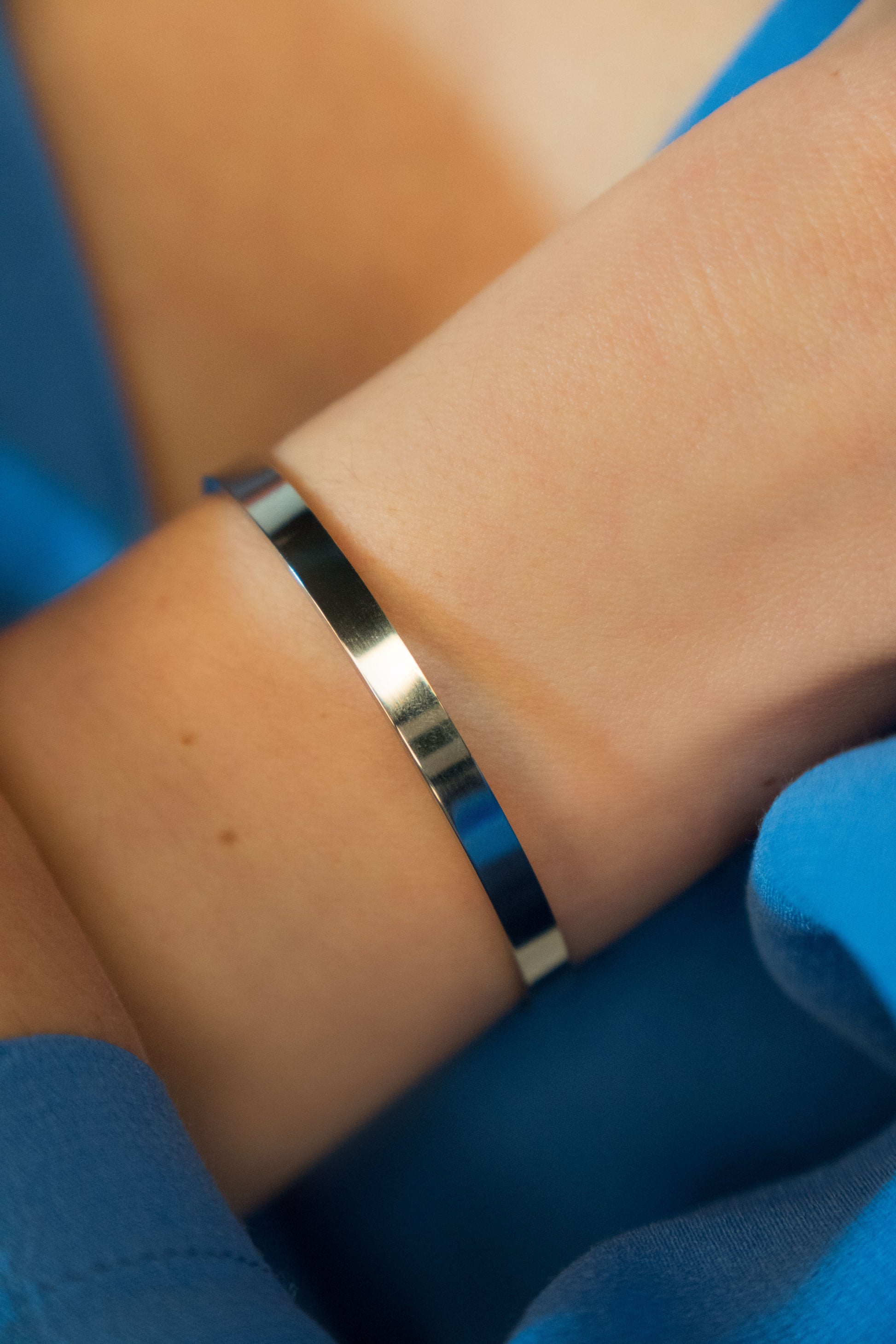 ceastă brățară tip cuff, realizată din oțel inoxidabil de înaltă calitate, este piesa esențială pentru iubitoarele de minimalism și eleganță modernă. Liniile curate și designul rafinat o fac extrem de versatilă, perfectă pentru purtat zi de zi sau combinată cu alte brățări pentru un look statement.