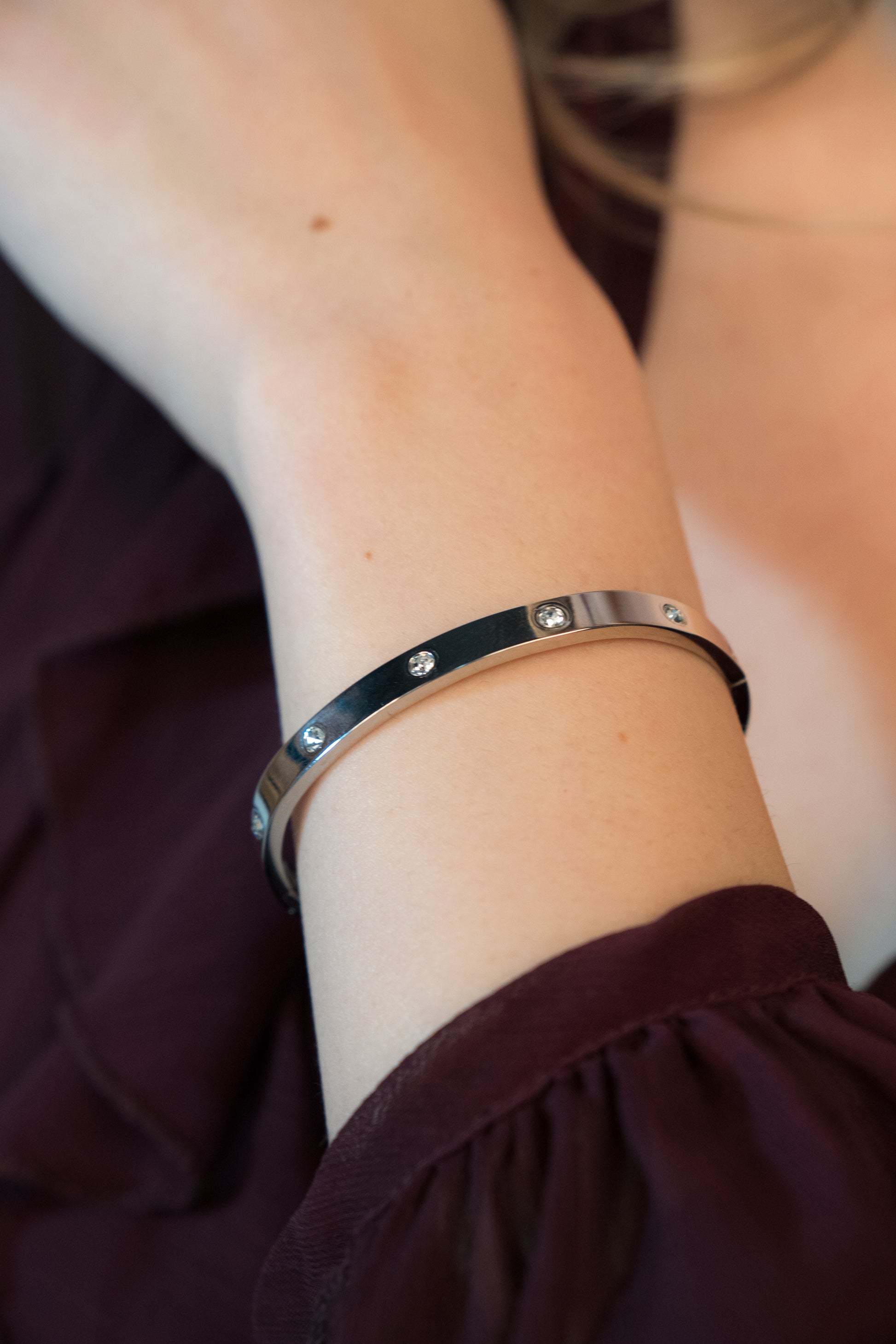 Inspirată de estetica bijuteriilor moderne și luxoase, această brățară rigidă cu cristale cubic zirconia este piesa care transformă orice ținută, de la casual la elegant, într-un statement subtil, dar rafinat.