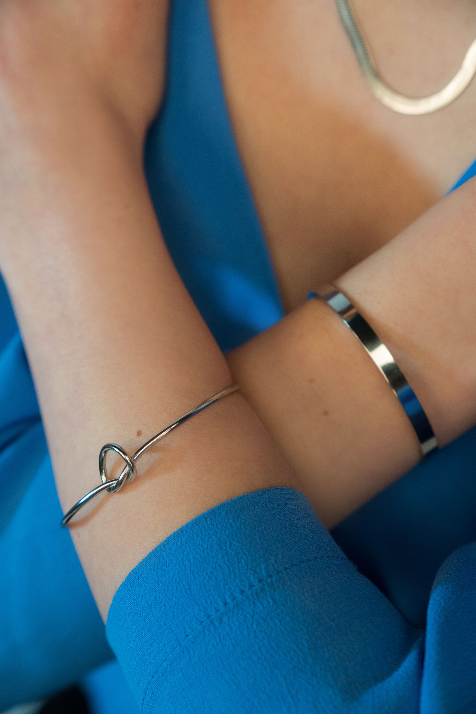 Un simbol al conexiunii și al eleganței, această brățară tip cuff cu nod este piesa perfectă pentru femeile care iubesc bijuteriile minimaliste, dar cu semnificație. Creată din oțel inoxidabil de înaltă calitate, designul ei fluid se mulează delicat pe încheietură, iar nodul central reprezintă uniune, echilibru și legături puternice.
