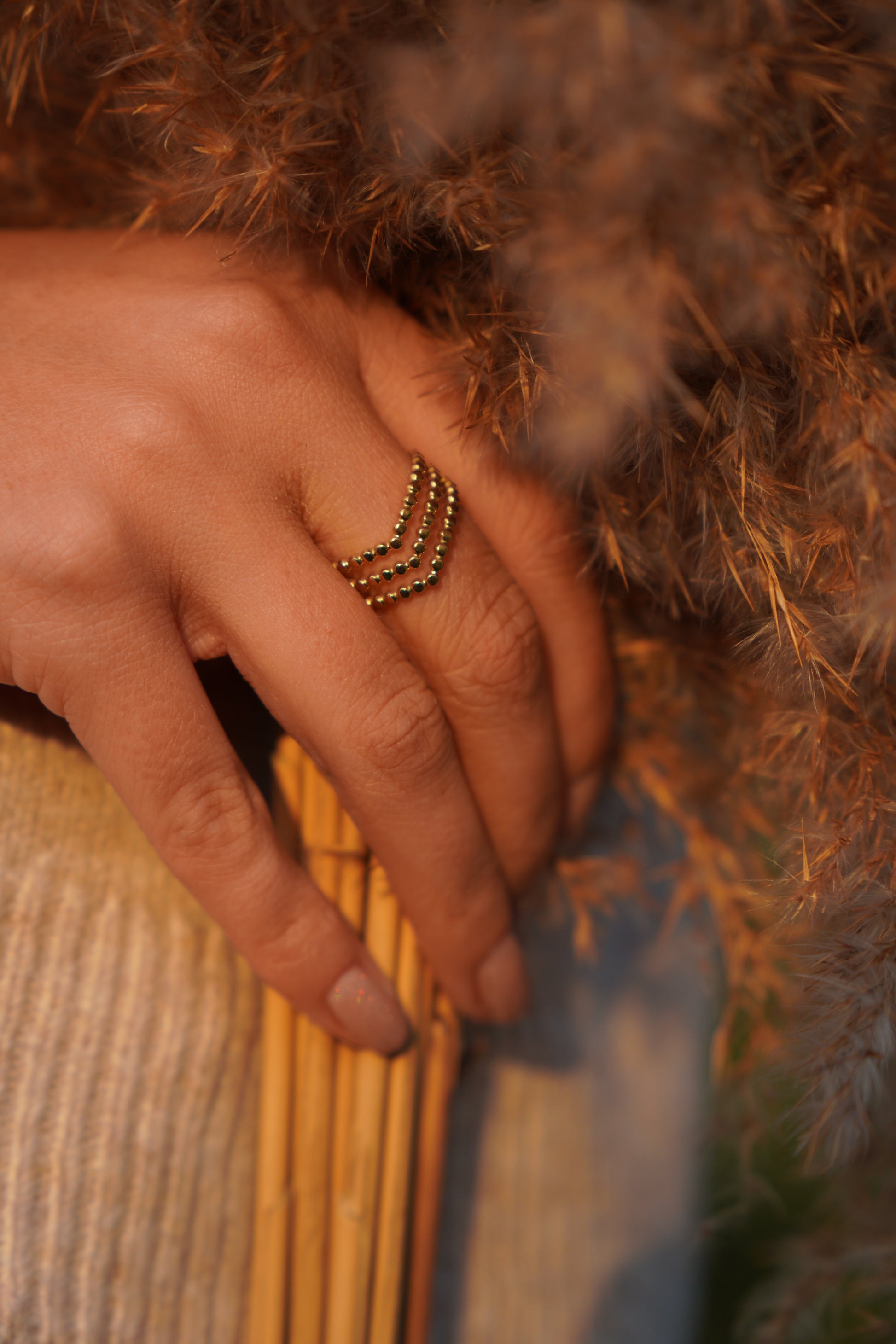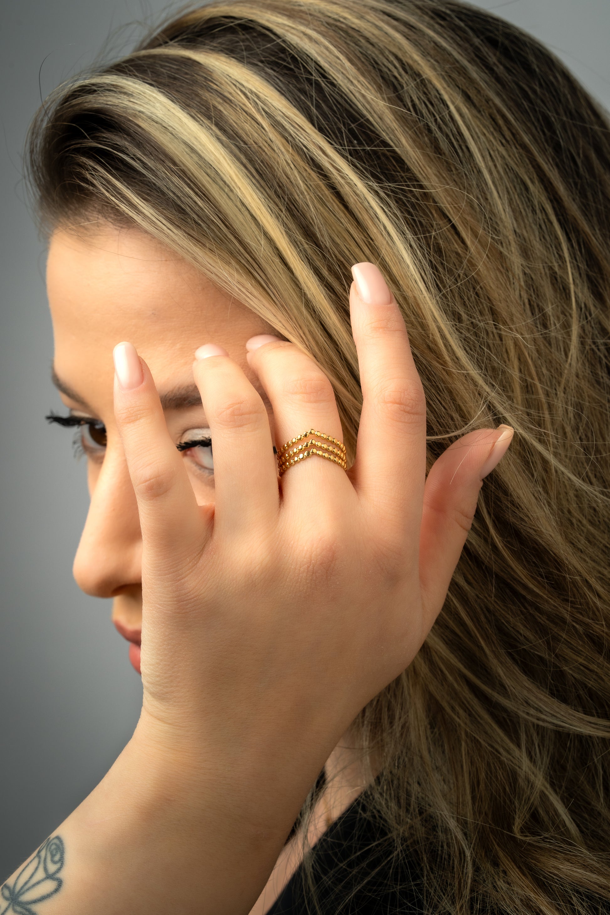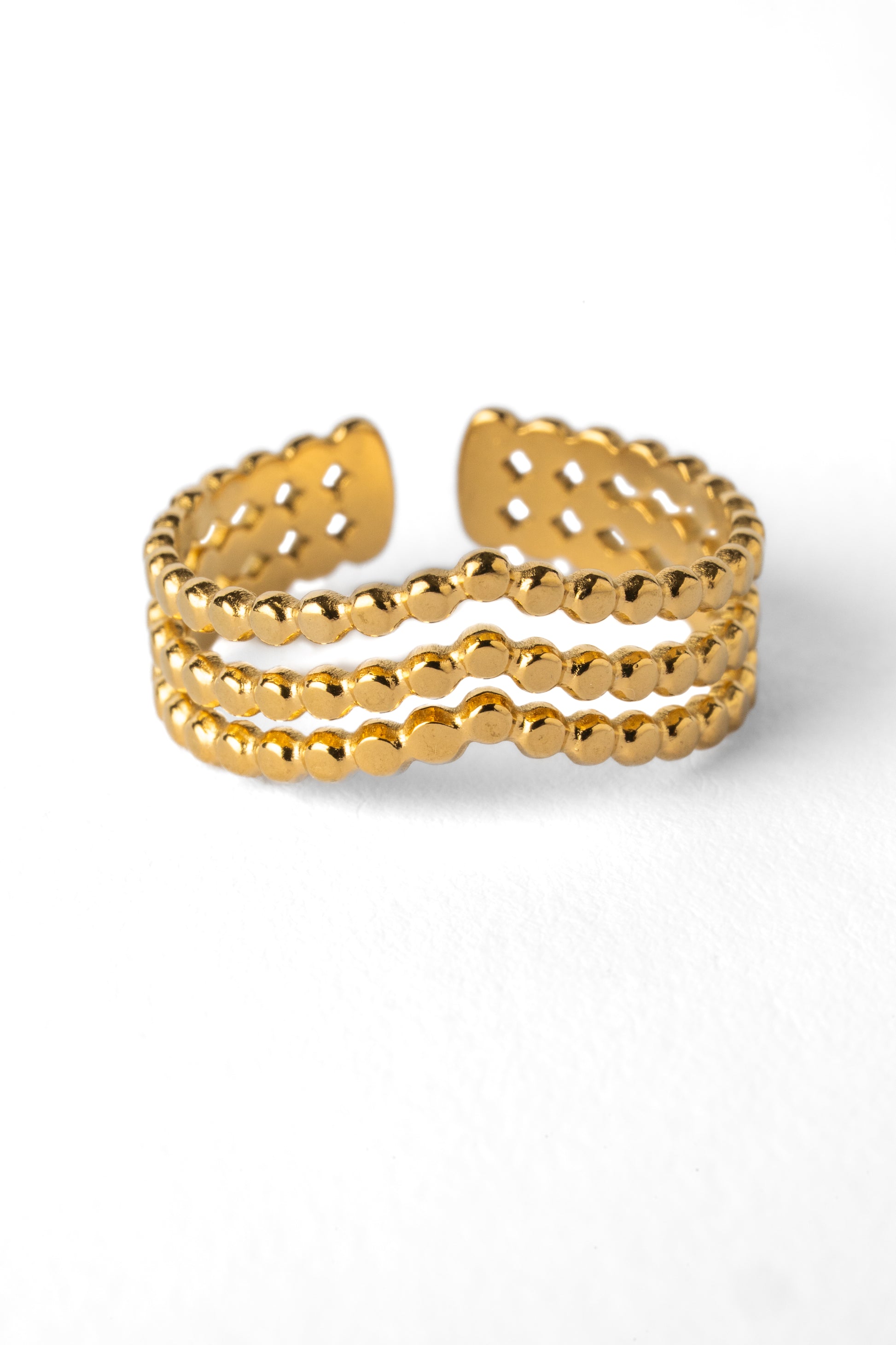 Inel ajustabil placat cu aur de 18K cu trei benzi texturate în relief.